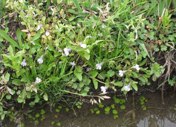 水辺には、うす紫のサギゴケ 楚楚として美しいです。