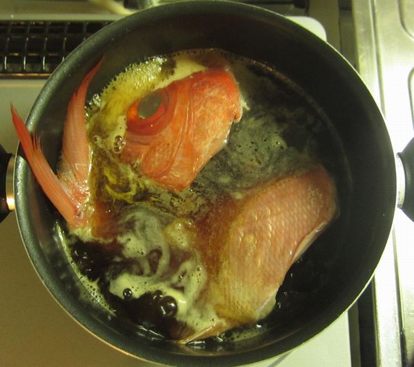 頭と胴体が離れている、キンメダイ煮付け