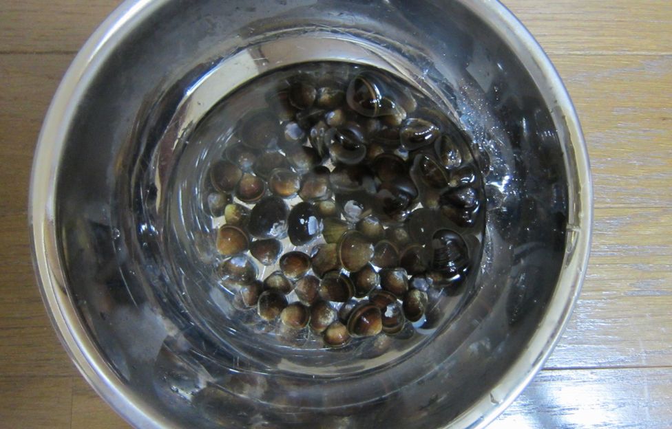 砂出し中のシジミくんたち。ああ、明日の朝が楽しみです