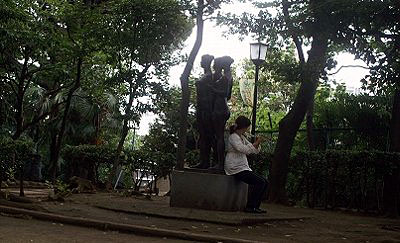 公園の片隅には、ホームレスの住居があるかと思えば、