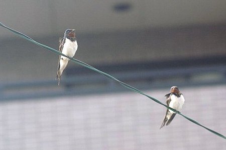 一羽だけ、身を乗り出していました。少年ツバメかしら。