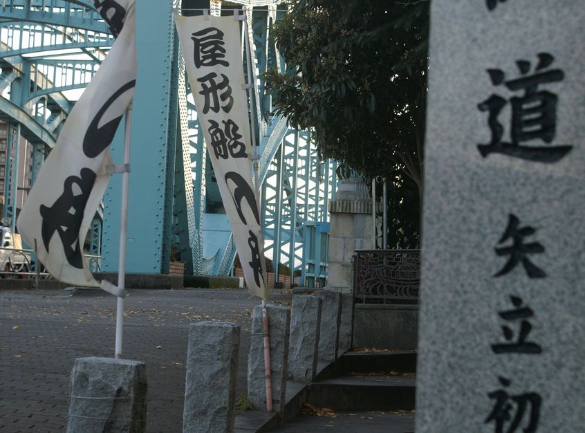 「奥の細道 矢立初めの地」 の石碑が立っていますし、いまなお「屋形船」ののぼりが風に揺れる、歴史を感じる場所なのです(普段は何も考えず通っていますが