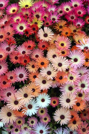 うって変わって、こちらは色とりどりの花をつけた、リビングストンデイジーです。子どものお菓子のように可愛く、賑やかに咲いていました。