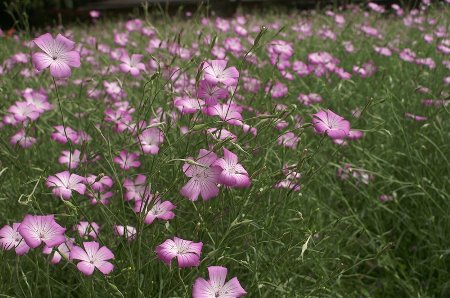 アグロステンマ。細長い茎に五センチぐらいのピンク色の花をつけて、初夏の風にゆらゆらとなびいていました。優しい感じのする花です。